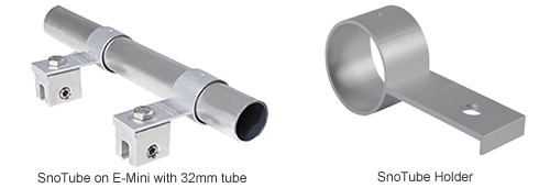 SnoTube is a highly cost effective system for snow retention. The system utilizes the SnoTube holder, which is an Aluminium material, this is attached onto the specified S-5 Mini Clamp and then common 32mm-tubing is slid into the tube holder.